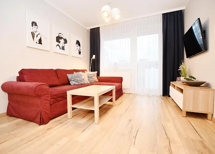 Az 1 szobás Apartamenty Navigator-Blizej Morza 96 Kołobrzeg könnyű elérhetőséget kínál az olyan turisztikai látványosságokhoz, mint az alig egy 6 perces sétára található Fuse Tower. A 45 m^2-es apartman kilátást nyújt a városra, és van terasz is.